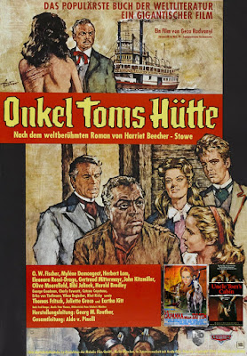 Speaking of Bond actors utterly oblivious to their presence in an Al Adamson movie, John Kitzmiller probably would've been shocked to find himself starring in the director's 1977 version of UNCLE TOM'S CABIN, especially since he died in 1965. Best known as Quarrel, the islander who helps 007 get to Crab Key in 1962's DR. NO, Kitzmiller was born in Battle Creek, MI in 1913 and joined the US Army after graduating with a chemical engineering degree from the University of Michigan. He was stationed in Italy during WWII and just stayed there when the war ended. He fell into acting after a chance encounter with a young Carlo Ponti, which led to him becoming a regular presence in postwar Italian neo-realist films, including one of the lead roles in Federico Fellini's 1950 directing debut VARIETY LIGHTS. He worked all over Europe, even winning the Best Actor award at the 1957 Cannes Film Festival for the Yugoslavian war drama VALLEY OF PEACE. It didn't lead to bigger and better roles--being a black actor in Europe, Kitzmiller found his options were limited, so he usually ended up playing a variety of soldiers, servants, or jazz musicians, and as time went on, he fell into depression and alcoholism. But in 1964, he landed the starring role in UNCLE TOM'S CABIN, a prestigious, three-hour West German/French/Italian/Yugoslavian adaptation of Harriet Beecher Stowe's legendary 1852 novel. As Uncle Tom, Kitzmiller headed an international cast that included Herbert Lom as Simon Legree, German-based American singer Olive Moorefield as Cassy, and other respected European actors like O.W. Fischer, Mylene Demongeot, Eleonora Rossi Drago, Charles Fawcett, and Juliette Greco. It was directed by Hungarian filmmaker Geza von Radvanyi, best known for the 1958 version of MADCHEN IN UNIFORM. UNCLE TOM'S CABIN won acclaim in Europe when it premiered in West Germany in April 1965, but it still didn't provide a career bump for Kitzmiller: the actor died two months before the film's release, succumbing to cirrhosis of the liver at just 51.
