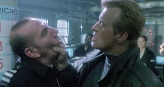 SPLIT SECOND's wild plot developments have a pretty obvious "making it up as they go along" aura, but Hauer and Duncan are such a great team that you can't help but roll with whatever bullshit the filmmakers throw at you (there's a scene where they're jawing at each other as Duncan breaks and Hauer starts grinning but keeps it together, and they just left it in, and you know what? It's perfect). They bust each other's chops, they get chewed out by their blustering boss Thrasher (Alun Armstrong as Bob Hoskins as Frank McRae), and Stone has a perfect foil in asshole, desk jockey precinct adversary Paulsen (a pre-mainstream success Pete Postlethwaite), which generates some amazing shouting throughout, particularly during one epic rant from Armstrong. Duncan's manic, Roy Scheider-like freakout after a near-fatal encounter with the creature ("We need bigger guns!") got a lot of laughs in the theater, as did any number of zingers like "Zip up, Dick," Stone's coffee-stirring staredown with Paulsen, and his incredulous reactions to Durkin's repeated boasting about how much he gets laid and how he manages to work it into the conversation ("You read these?" Stone asks, seeing books on demonology and astrology in Durkin's car, with Durkin deadpanning "Yeah, last night. After sex"). In a perfect world, SPLIT SECOND would've been a huge hit and Hauer and Duncan would've teamed up as Stone and Durkin for at least two sequels in the future London dystopia version of the LETHAL WEAPON franchise.