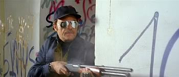 1990: THE BRONX WARRIORS also introduced the world to the enigmatic and elusive Mark Gregory. Just 17 years old at the time of filming, young Marco di Gregorio was discovered working out at a Rome gym that Castellari frequented. Rechristened "Mark Gregory," the novice actor's screen presence is, in a word, awkward. His strange, halting posture and his pulled-too-high jeans are a sight to behold, and, well, there's no really delicate way to put this: he's got a chick's ass. This, and his apparent orientation (Williamson said in the DVD's accompanying interview, "Let's just say he didn't leave any footprints in the snow") weren't lost on the Hells Angels playing his fellow Riders, who, according to Castellari, openly razzed and insulted the actor, who didn't speak or understand much English. Gregory seems to be phonetically mouthing English, and was dubbed by the very Noo Yawk-sounding Steven Luotto. Gregory would eventually bulk up a bit more and gain some more confidence in his screen presence, never again looking quite as silly as he does here. Following 1990: THE BRONX WARRIORS, Gregory reprised his role as Trash in Castellari's inferior sequel ESCAPE FROM THE BRONX. Shot in 1983 and released in the US by New Line Cinema in 1985, ESCAPE is unremarkable except for Henry Silva's over-the-top, coffee-spitting performance as a psycho sent in by the Manhattan Corporation to once again exterminate Trash and the denizens of the Bronx. ESCAPE FROM THE BRONX was skewered on MST3K under its alternate title ESCAPE 2000, which is not be confused with Brian Trenchard-Smith's ESCAPE 2000, aka TURKEY SHOOT.