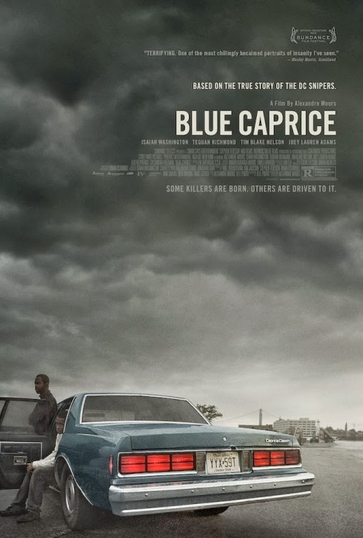 A loose chronicle of the October 2002 Beltway sniper attacks, BLUE CAPRICE seems to adamantly refuse to get too specific about anything. There's a methodical, riveting ZODIAC-esque thriller that could've been made about this subject, but that's not the film that director Alexandre Moors and writer R.F.I. Porto chose to make. One's reaction to BLUE CAPRICE is largely predicated on accepting that it's a thriller second and an oblique, sometimes esoteric mood piece first. The filmmakers stick close to the facts, but this is the kind of film where you almost need to study up on the subject or risk being lost at some points. John Mohammed and Lee Malvo were the perpetrators of these killings--Mohammed was executed by lethal injection in 2009 and Malvo is serving multiple life sentences with no possibility of parole. You won't learn that by watching BLUE CAPRICE. You don't even get last names. In Antigua, 17-year-old Lee (Tequan Richmond) is abandoned by his mother and attempts suicide by drowning when he's rescued by John (GREY'S ANATOMY pariah Isaiah Washington in his first noteworthy gig since getting fired from the show for homophobic slurs directed at openly gay co-star T.R. Knight), an American on vacation with his three kids--he's actually got a restraining order forbidding him to see his kids and his ex-wife and he took them without authorization. John brings Lee back to his hometown of Tacoma, WA, where the pair move in with John's girlfriend (Cassandra Freeman). John's temper and paranoia get them booted out and the pair shack up with his gun-nut buddy Ray (Tim Blake Nelson) and his wife Jamie (Joey Lauren Adams). A twisted father/son bond develops between John and Lee, more akin to brainwashing on Lee's part, as he absorbs all of John's bitterness and rage about his ex-wife and not knowing the whereabouts of his children. Once it's discovered that Lee is a natural with firearms, John decides that it's time to make everyone pay. Their killing spree--first in Tacoma, then going cross-country--ultimately lands them in the D.C. area, where John drives and Lee picks off random people with a rifle aimed through a small hole cut in the trunk of a beat-up Caprice.