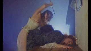 Hyde usually violates his victims--both female and male--with his incredibly large organ ("The sex of the criminal was extremely long and pointed, wasn't it?" a guest asks after finding a victim penetrated so deeply that the abdomen was ripped apart), with Zalcberg's stunt cock given several close-ups by Borowczyk in a couple of scenes that dangerously flirt with crossing over into hardcore porn, and no one really pieces together that Hyde only appears after Jekyll excuses himself and goes into his laboratory. In the lab, he has a bath filled with a secret potion called Solicor, which allows him to shed his proper Victorian image and become the raging id that lurks beneath. Once transformed into Hyde, he obliterates the facade of Victorian societal decorum, dismantling it one horrifying assault at a time as he annihilates cherished institutions like the military, the clergy, medicine, and family. He ties up the tough-talking Carew (one of Magee's most insane performances in a career filled with them) and forces him to watch as he has his way with the General's rebellious, willing, and sexually adventurous daughter as she's bent over a table, fondling and stroking the world's most phallic sewing machine. He rapes one of the male guests after pursuing him through the darkened house. Eventually, he even rapes his own mother (Giselle Preville, the 1935 Miss France runner-up who inherited the crown when the winner gave it up after just two hours), shouting "I'm going to break you in two, decrepit hag!" Fanny finds out his secret, and rather than being terrified, she's intrigued and even turned on, jumping into the Solicor bath with him, transforming into her own Hyde as the two commandeer a coach and ride off in the night, their dead guests' bodies strewn about the mansion as Parmegiani's score drones and on and on and on.