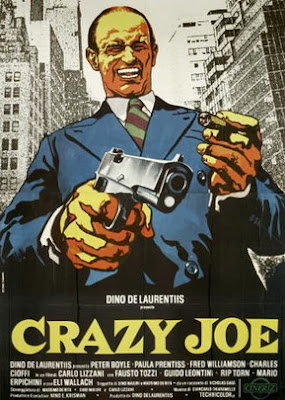 Made during the post-GODFATHER days when theaters were flooded with mob movies, the obscure Italian-U.S. co-production CRAZY JOE is a sufficiently entertaining but simplistic and superficial look at famed NYC gangster "Crazy Joe" Gallo, who was gunned down outside an Italian restaurant in 1972. The film opens in 1960, as Joe (Peter Boyle) and his older brother Richie (Rip Torn) are fed up with their status as low-level errand boys after years of busting their asses for powerful New York mobster Falco (Luther Adler). Branching out on their own incurs the wrath of Falco and the other bosses, not to mention the Boss of Bosses, Don Vittorio (Eli Wallach), a character based on Carlo Gambino. When Vittorio tells Falco to reach a compromise with the Gallo brothers, Falco instead orders a botched hit on them, which sets Joe off on a revenge spree that gets him ten years in prison. During this time, former Gallo associate Vince Coletti (Charles Cioffi) gets vocal in his political ambitions, which worries Vittorio, who unsuccessfully tries to talk Coletti into backing off and not bringing so much attention to the families.