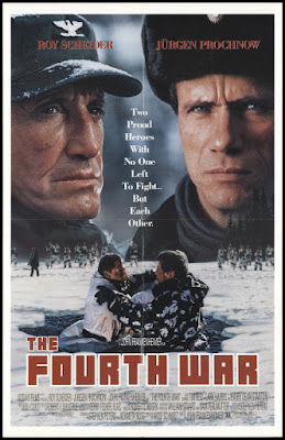 Scheider and Prochnow are excellent as battle-hardened warriors--one shattered by Vietnam, the other by Afghanistan--who don't know what to do with themselves in peacetime. They served their country with honor, but war is all they know and when they have no war to fight, they're happy to create their own. Both actors do a terrific job of conveying the rage they can't articulate while the same time giving off subtle indications--a look, a half-hearted smile--indicating that underneath all the fighting, there's a grudging respect for what the other guy's been through and an acknowledgment that they speak the same language. Frankenheimer (THE MANCHURIAN CANDIDATE, THE TRAIN) was a pro wise enough to spare us a hackneyed "We're a lot alike, you and I" discussion between Knowles and Valachev, and while it gets silly and implausible at times, Scheider and Prochnow keep it grounded and compelling, and there's fine support from Tim Reid as Knowles' by-the-book second-in-command. A solid little gem from Frankenheimer's lost years prior to his ANDERSONVILLE and RONIN resurgence in the late '90s, THE FOURTH WAR followed
