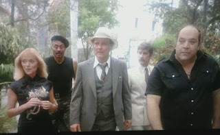 You also get Woody Strode as Luther, Santiago's top henchman, top-billed Nina Van Pallandt (a former model and one-time Robert Altman muse) as Joanna, the producer of the photo shoot, German actor Kai Wulff as a pilot and brief love interest for Joanna, and Dana Elcar (MACGYVER) as irate FBI agent D'Antoni, who seems to exist in another movie altogether (Elcar shares no scenes with any other main cast members and is always shown stewing and yelling in an office). The primary reason anyone remembers JUNGLE WARRIORS today is because of who wasn't in it: Dennis Hopper was originally set to co-star when the film went into production in early 1983, and he arrived at the remote Mexican location with his legendary drug and alcohol problems at their apex, working for a couple of days before fleeing the set when he was convinced people were trying to kill him. He was discovered in a small village 20 miles away, where he was picked up by local police after stripping nude and wandering around in a daze shouting "Kill me naked!" He was fired and put on the first flight to Los Angeles, where he had to be restrained when he tried to open the plane's emergency exit. Hopper would tell this story many times over the years, and the details only came from those who witnessed it--he had no memories of being in Mexico or even working on the movie before his dismissal. After years of escalating and ultimately out-of-control alcoholism (he was drinking over a case of beer and a nearly a gallon of rum a day) and substance abuse ("I'd do a few grams of coke to sober up"), Hopper hit bottom with his JUNGLE WARRIORS meltdown, and it proved to be the wake-up call that got him into rehab upon his return home, after which he remained clean and sober and within a few years, rebuilt his career with his triumphant comeback that began in 1986 with BLUE VELVET and an Oscar-nominated supporting turn in HOOSIERS. The common belief is that Hopper was cast as Larry and replaced by Gortner, which makes sense given some of Larry's behavior and Gortner's very Hopper-like performance. But an early trade ad in Variety that ran when the film started production (thanks to