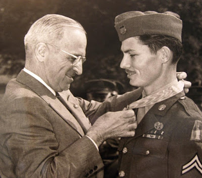 | Cpl. Desmond Doss receiving his Medal of Honor from President Harry Truman in 1945 |