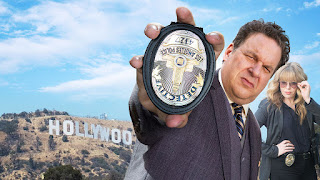 HANDSOME can't decide if it wants to be a straight procedural (for a movie purporting to be a comedy, Heather's murder seems like it belongs in SE7EN); a spoof of hard-boiled detective movies; an introspective, I WANT SOMEONE TO EAT CHEESE WITH character study with Handsome a schlubby guy who just wants to settle down and have a family; a ripoff of INHERENT VICE with its ridiculous character names and the recurring image of a woman dancing with hula hoops serving as a Sortilege of sorts who may or may not be real; and a lot of quippy smartassery in a Hollywood setting that's the unmistakable KISS KISS BANG BANG and THE NICE GUYS territory of Shane Black. Garlin even borrows the "self-loathing Jew" line from CURB YOUR ENTHUSIASM which, in all fairness since he's a creative partner on the show as well, might've been his in the first place. With its supporting cast and cameos by comedian Eddie Pepitone, Leah Remini as Handsome's sultry, accordian-playing neighbor, HOMICIDE HUNTER host Joe Kenda, and Kaley Cuoco as herself, HANDSOME has plenty of Garlin pals onboard but it's no INHERENT VICE, KISS KISS BANG BANG or THE NICE GUYS, and its jarring tonal shifts constantly stall any momentum it comes close to generating, making it feel like an interminable slog even at just 80 minutes. Garlin can be funny as hell in the right situation, and CURB YOUR ENTHUSIASM wouldn't be the same without him. But movies don't seem to play to his strengths, and aside from some occasional jokes that land in the opening third, the best that can be said for HANDSOME: A NETFLIX MYSTERY MOVIE is that it's at least a marginal improvement over DEALIN' WITH IDIOTS, an assessment that may very well set a new standard for "damning with faint praise."
