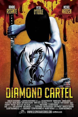 If you think it's strange seeing established actors like Assante and Tagawa in something like this, then take a deep breath because it gets worse: shot from 2011 to 2013, the Kazakh-financed DIAMOND CARTEL began life as THE WHOLE WORLD AT OUR FEET before some tweaking, re-editing, and dubbing was done to transform it into its current state. The newly-christened DIAMOND CARTEL actually made it into a handful of US theaters in April 2017, courtesy of the Sony-owned indie The Orchard and goth record label Cleopatra. Former Francis Ford Coppola associate and current right-wing propagandist Gray Frederickson, who got an Oscar as one of the producers of THE GODFATHER PART II, was nominated for an Oscar for producing APOCALYPSE NOW, but most recently shepherded the faithsploitationer PERSECUTED and Dinesh D'Souza's AMERICA: IMAGINE THE WORLD WITHOUT HER, is listed among the producers. The supporting cast includes Michael Madsen and Tiny Lister as a pair of criminals fencing a diamond, and they get a bullet in the head about 45 seconds after they're introduced. There's also '90s B-movie martial arts icons Don "The Dragon" Wilson (BLOODFIST) and Olivier Gruner (NEMESIS), both badly dubbed even though they're speaking English, as well as erstwhile BLOODSPORT villain Bolo Yeung, cast as an assassin named "Bulo."