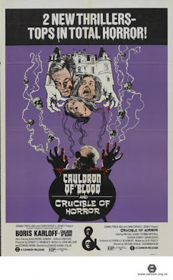 An early release from the pre-Golan & Globus incarnation of Cannon, and shown in theaters on a double bill in the fall of 1971 with CAULDRON OF BLOOD, a Spanish cheapie that was one of Boris Karloff's several posthumously released films after his death in 1969, the British shocker CRUCIBLE OF HORROR (not to be confused with the same year's CRUCIBLE OF TERROR) has a nostalgic following after being in regular rotation on late-night TV in the '70s and '80s. Nevertheless, it's a frustrating film because there's obviously some thought and ambition that went into it, but it's so leadenly-paced and indecisive over what it's doing--the first 40 minutes are incredibly slow--that it eventually becomes self-defeating. And it's got what might be the ultimate ambiguous ending that's just gonna piss everyone off. But there's something here, particularly its bleak and disturbing depiction of the cycle of abuse in a seriously dysfunctional family. The great Michael Gough is Walter Eastwood, the physically and psychologically abusive patriarch of an upper class family. He constantly berates his wife Edith (Yvonne Mitchell) and has not-very-subtle incestuous designs on his daughter Jane (Sharon Gurney), while his dutiful and sycophantic son Rupert (Gough's own son Simon) seems to be following in his father's footsteps. Edith and Jane decide they've had enough and plot to kill Walter, with unexpected complications ensuing, namely a corpse that won't stay put, and a nosy neighbor (actor and occasional screenwriter Olaf Pooley, who would also do some uncredited script work on Cannon's insane LIFEFORCE a decade and a half later) whose dog almost exposes the whole scheme.